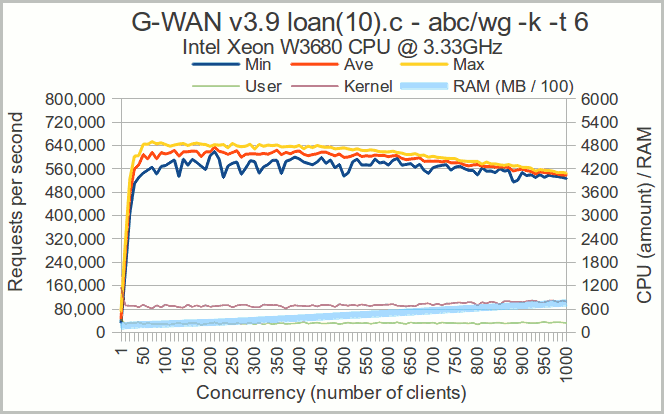 All other servers – and especially the (Microsoft, Google, IBM, Oracle, etc.) application servers (generating dynamic pages) were slower by several orders of magnitude while consuming much more RAM and CPU resources than G-WAN (artificially inflating OS/software licensing costs, but also hardware, Cloud and energy costs).