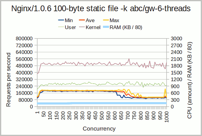 Static contents: a 100-byte HTML file